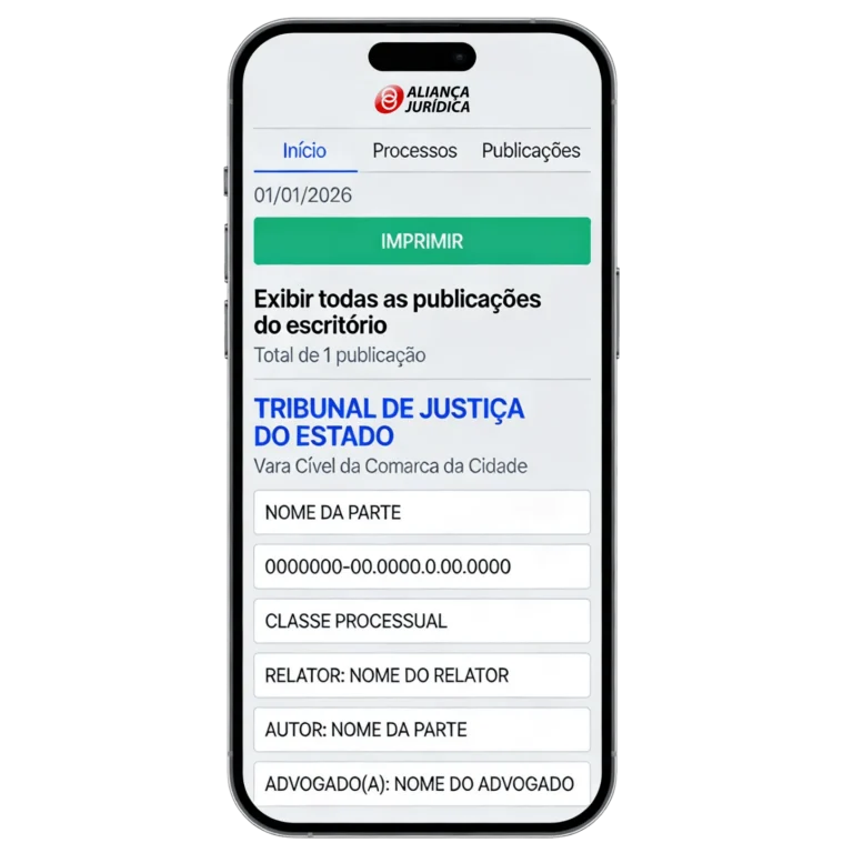 A Aliança Jurídica foi desenvolvida para oferecer mais praticidade, organização e segurança na rotina jurídica. Com uma plataforma digital, advogados e escritórios podem centralizar informações importantes e acessar dados com mais facilidade no dia a dia. Assim, a gestão jurídica se torna mais eficiente, confiável e alinhada às necessidades da operação.